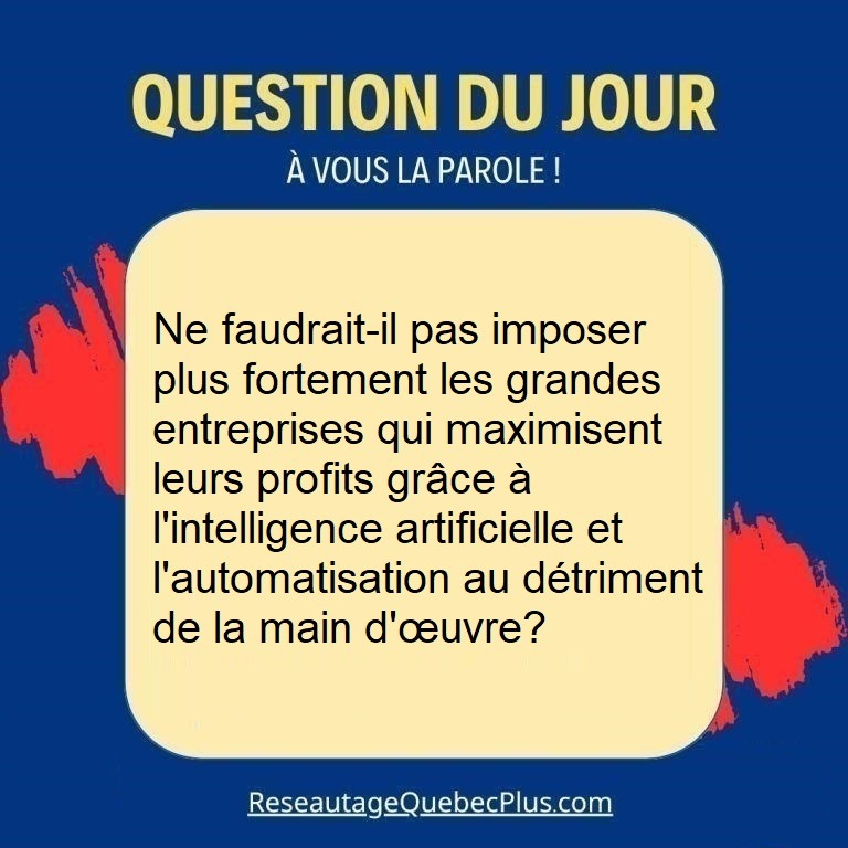 Ne faudrait-il pas imposer plus fortement les grandes entreprises qui maximisent leurs profits grâce à l'intelligence artificielle et l'automatisation au détriment de la main d'œuvre? L'essor fulgura...